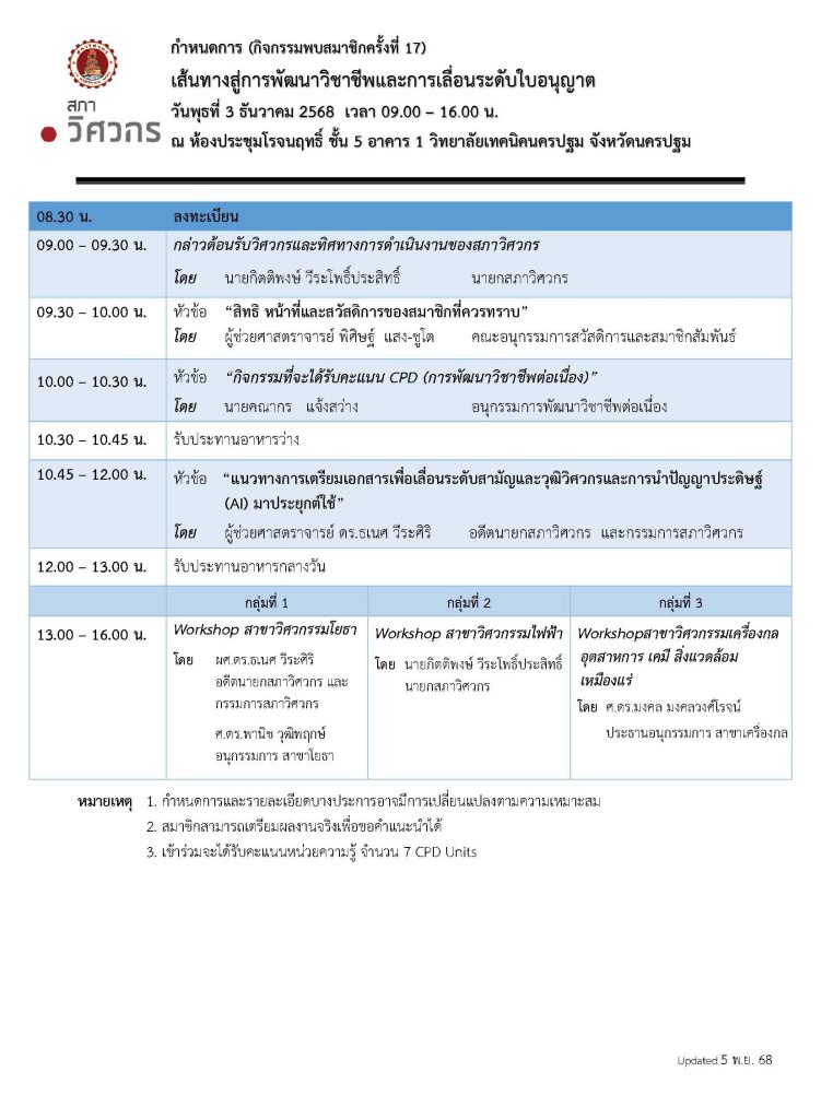 📣 เปิดลงทะเบียนแล้ว! เส้นทางสู่การพัฒนาวิชาชีพและการเลื่อนระดับใบอนุญาต จังหวัดนครปฐม (กิจกรรมพบสมาชิกครั้งที่ 17)