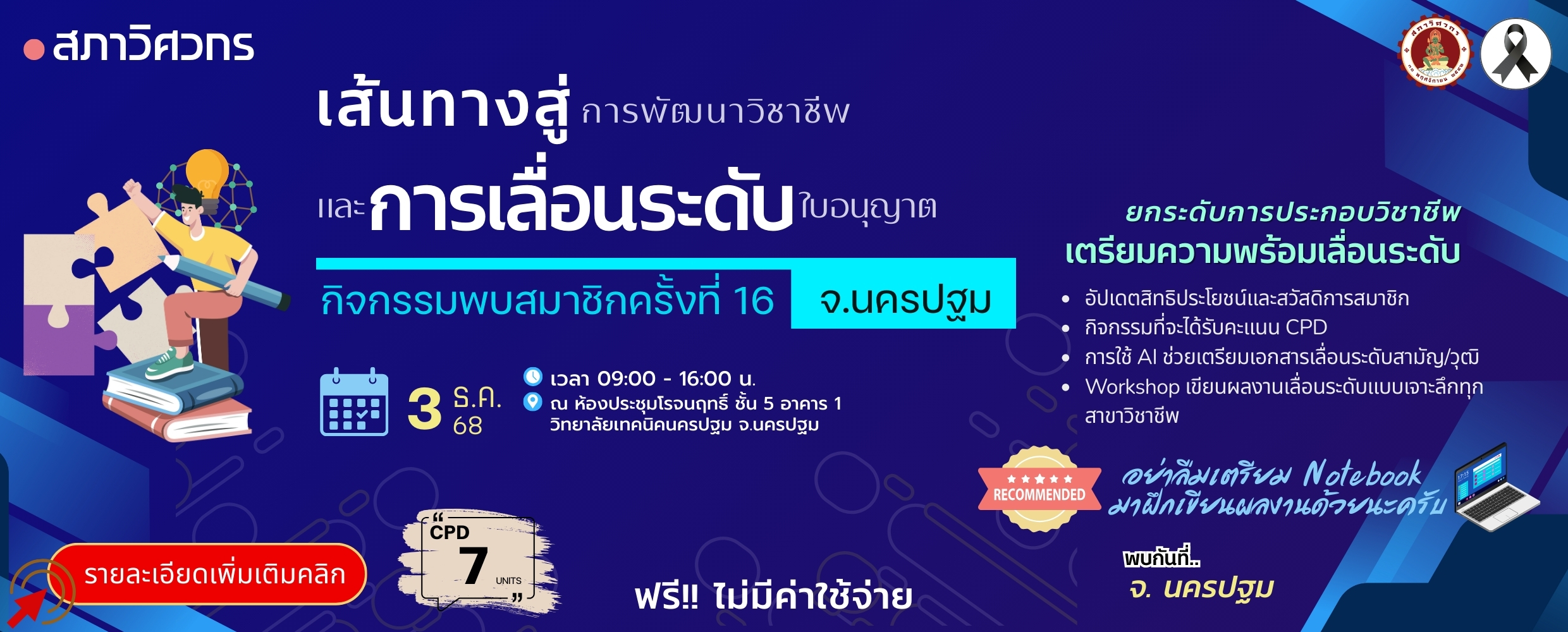 สภาวิศวกรขอเผยแพร่ประกาศสภาวิศวกรที่ 99/2568 เรื่อง ลักษณะบัณฑิตที่พึงประสงค์สำหรับการประกอบวิชาชีพวิศวกรรมและวิชาชีพวิศวกรรมควบคุม (มีผลบังคับใช้วันที่ 27 พฤศจิกายน 2568) ✨สาระสำคัญ ✨ เพื่อกำหนดรายละเอียดของลักษณะบัณฑิตที่พึงประสงค์ สำหรับการประกอบวิชาชีพวิศวกรรมและวิชาชีพวิศวกรรมควบคุม และตารางเปรียบเทียบข้อกำหนดความรู้และทัศนคติด้านวิศวกรรมสำหรับหลักสูตรวิศวกรรมศาสตร์ (Engineering Program) ตามข้อตกลง Washington Accord และหลักสูตรวิศวกรรมศาสตร์หรือหลักสูตรเทคโนโลยีทางวิศวกรรม (Engineering Technology Program) ตามข้อตกลง Sydney Accord รวมถึงเปรียบเทียบบริบททางด้านการกำหนดปัญหา การแก้ปัญหาและการปฏิบัติงานทางด้านวิศวกรรม