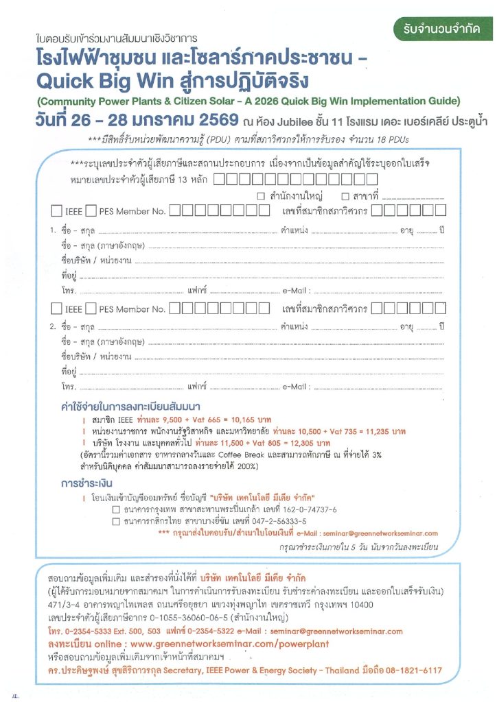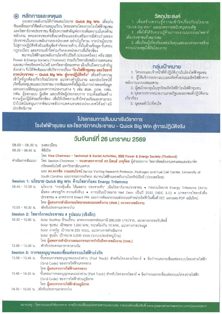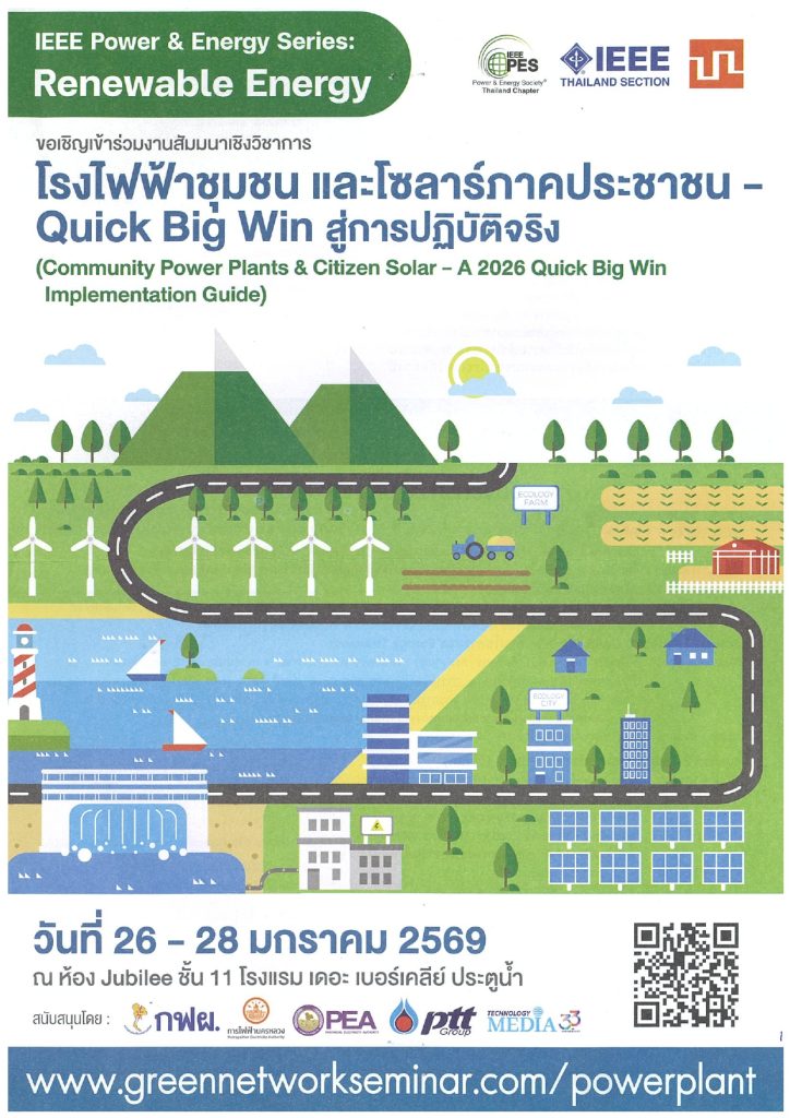 สมาคมไฟฟ้าและพลังงานไอทริปเปิลอี (ประเทศไทย) ขอเชิญร่วมการสัมมนาเชิงวิชาการ เรื่อง “ โรงไฟฟ้าชุมชน และโซลาร์ภาคประชาชน – Quick Big Win สู่การปฏิบัติจริง ”