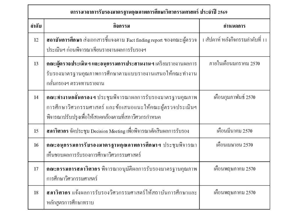 สภาวิศวกรขอเชิญชวนสถาบันการศึกษาที่เปิดสอนในหลักสูตรวิศวกรรมศาสตร์และมีการจัดการเรียนการสอนตามเกณฑ์ผลลัพธ์ (Outcome-Based Education) ยื่นคำขอรับการรับรองมาตรฐานคุณภาพการศึกษาวิศวกรรมศาสตร์กับหน่วยงาน TABEE รอบปี 2569 (ชุดที่ 11) เพื่อเป็นการยกระดับคุณภาพการศึกษาด้านวิศวกรรมศาสตร์ของประเทศไทยให้มีมาตรฐานระดับสากล และเป็นประโยชน์ต่อวิศวกรที่สำเร็จการศึกษาแล้วสามารถไปศึกษาต่อและประกอบวิชาชีพวิศวกรรมในประเทศที่ได้รับการรับรองคุณภาพการศึกษา (Accreditation) ภายใต้ International Engineering Alliance (IEA)