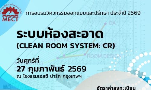 21 Jan 2026สมาคมวิศวกรที่ปรึกษาเครื่องกลและไฟฟ้าไทย ขอเชิญเข้าร่วมหลักสูตรระบบห้องสะอาด (Clean Room System: CR)