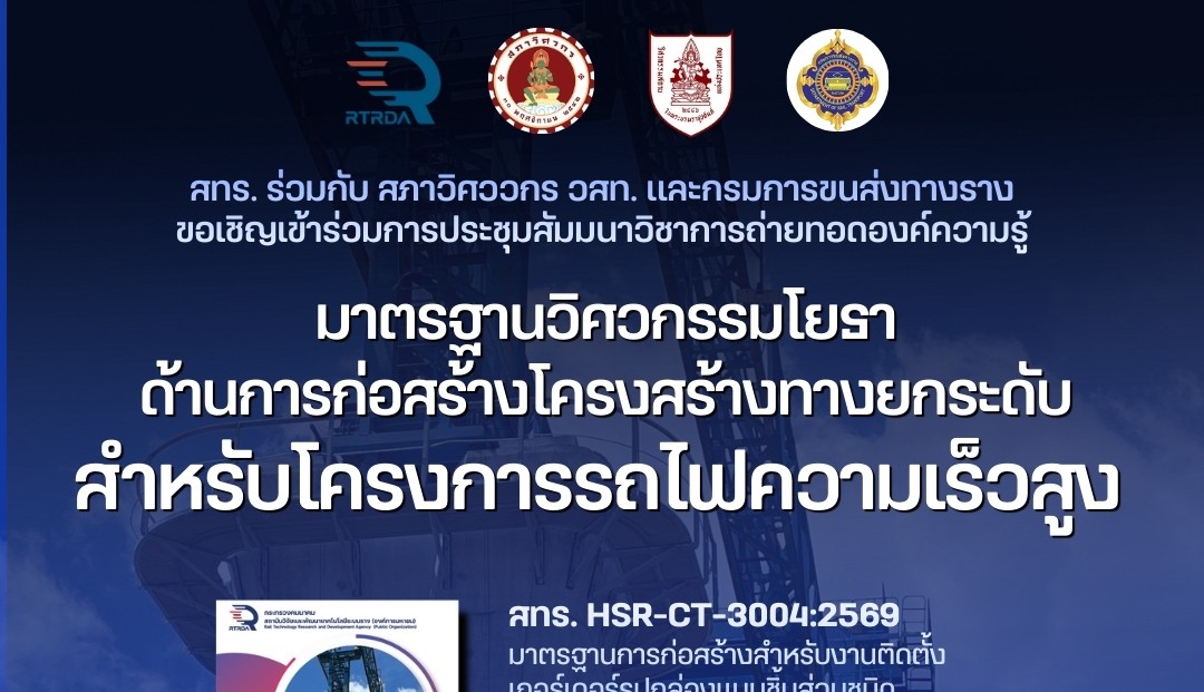 21 Jan 2026ขอเชิญประชุมสัมมนาวิชาการ | หัวข้อ “มาตรฐานวิศวกรรมโยธา ด้านการก่อสร้างโครงสร้างทางยกระดับ สำหรับโครงการรถไฟความเร็วสูง ”