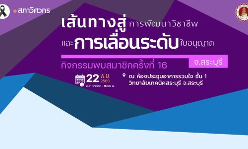📣 เปิดลงทะเบียนแล้ว! เส้นทางสู่การพัฒนาวิชาชีพและการเลื่อนระดับใบอนุญาต จังหวัดสระบุรี (กิจกรรมพบสมาชิกครั้งที่ 16) 🎉เตรียมตัวให้พร้อม ก้าวสู่ความเป็นมืออาชีพ!🎉งานสัมมนาที่คุณไม่ควรพลาด! เหมาะสำหรับวิศวกรทุกระดับที่ต้องการ เลื่อนระดับใบอนุญาต, สะสม CPD Units, และ อัปเดตความรู้สายอาชีพ อย่างเข้มข้นและครบถ้วนในวันเดียว 📅 วันเสาร์ที่ 22 พฤศจิกายน 2568⏰ 09.00 – 16.00 น.📍 ณ ห้องประชุมอาคารรวมใจ ชั้น 1 วิทยาลัยเทคนิคสระบุรี จังหวัดสระบุรี (เท่านั้น) ✅ เข้าร่วมฟรี! รับคะแนนหน่วยความรู้ จำนวน 7 CPD Units • การนำปัญญาประดิษฐ์ (AI) มาช่วยในการเตรียมเอกสารเพื่อเลื่อนระดับสามัญและวุฒิวิศวกร• เข้าร่วม Workshop เขียนผลงานเลื่อนระดับเชิงลึก : เรียนรู้เทคนิคการเขียนผลงานเพื่อเลื่อนระดับอย่างเข้มข้นลงลึกแต่ละสาขา (สมาชิกควรนำเครื่องคอมพิวเตอร์ และผลงานที่ท่านสะสมไว้มาขอคำแนะนำจากวิทยากรอย่างใกล้ชิด)• รับฟังการบรรยายกิจกรรม CPD มีอะไรบ้างแนะนำการ เข้าระบบเพื่อบันทึกคะแนน CPD ง่ายๆ ด้วยตัวท่านเอง• มารับทราบ Update สวัสดิการที่ท่านได้รับและสิทธิหน้าที่ที่ท่านพึงมีต่อสภาวิศวกร วันงานขอให้ผู้เข้าร่วมงานดำเนินการ […]