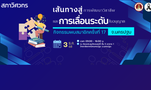 7 Nov 2025พบกันจังหวัดนครปฐม-เส้นทางสู่การพัฒนาวิชาชีพและการเลื่อนระดับใบอนุญาต (กิจกรรมพบสมาชิกครั้งที่ 17)