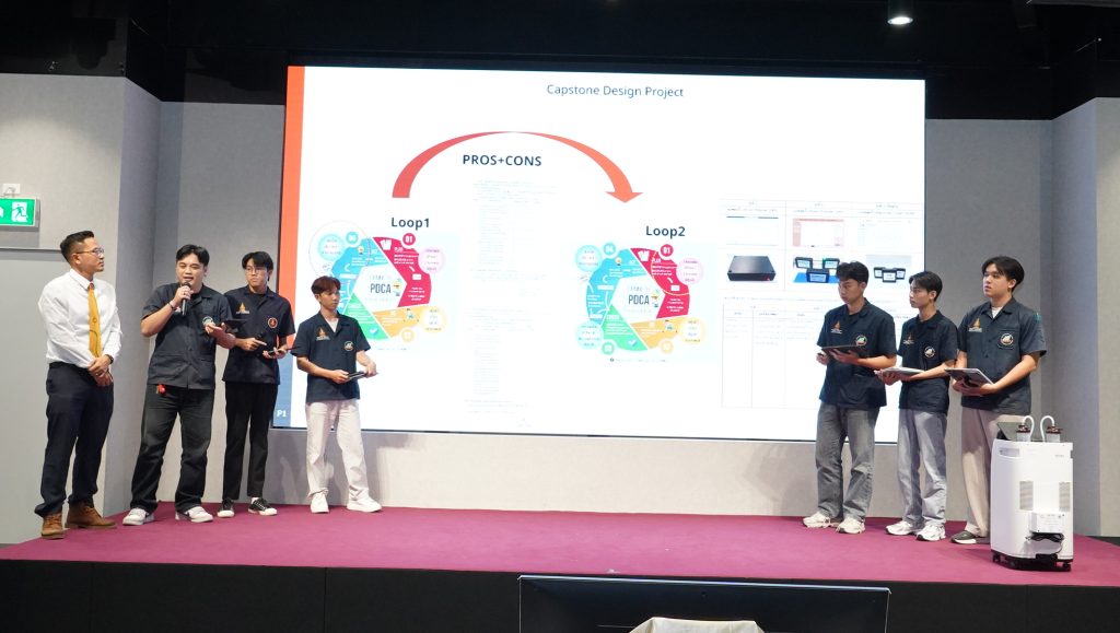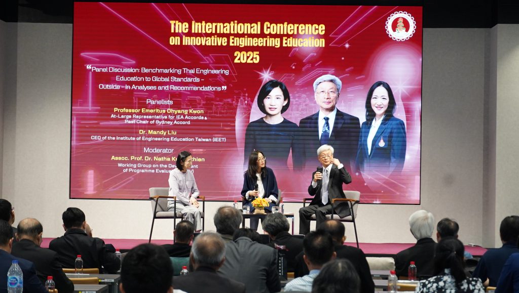 ในช่วงบ่ายมีไฮไลท์สำคัญคือการเสวนาในหัวข้อ “Benchmarking Thai Engineering Education to Global Standards” ซึ่งเปิดเวทีให้ผู้เชี่ยวชาญนานาชาติร่วมแลกเปลี่ยนมุมมองเกี่ยวกับมาตรฐานการศึกษาวิศวกรรมไทย พร้อมทั้งมีการนำเสนอผลงาน Capstone Design Project จากนักศึกษาไทย โดยได้รับคำแนะนำตรงไปตรงมาจากผู้ทรงคุณวุฒิ สร้างแรงบันดาลใจและมุมมองใหม่ ๆ ให้กับผู้เข้าร่วมประชุม