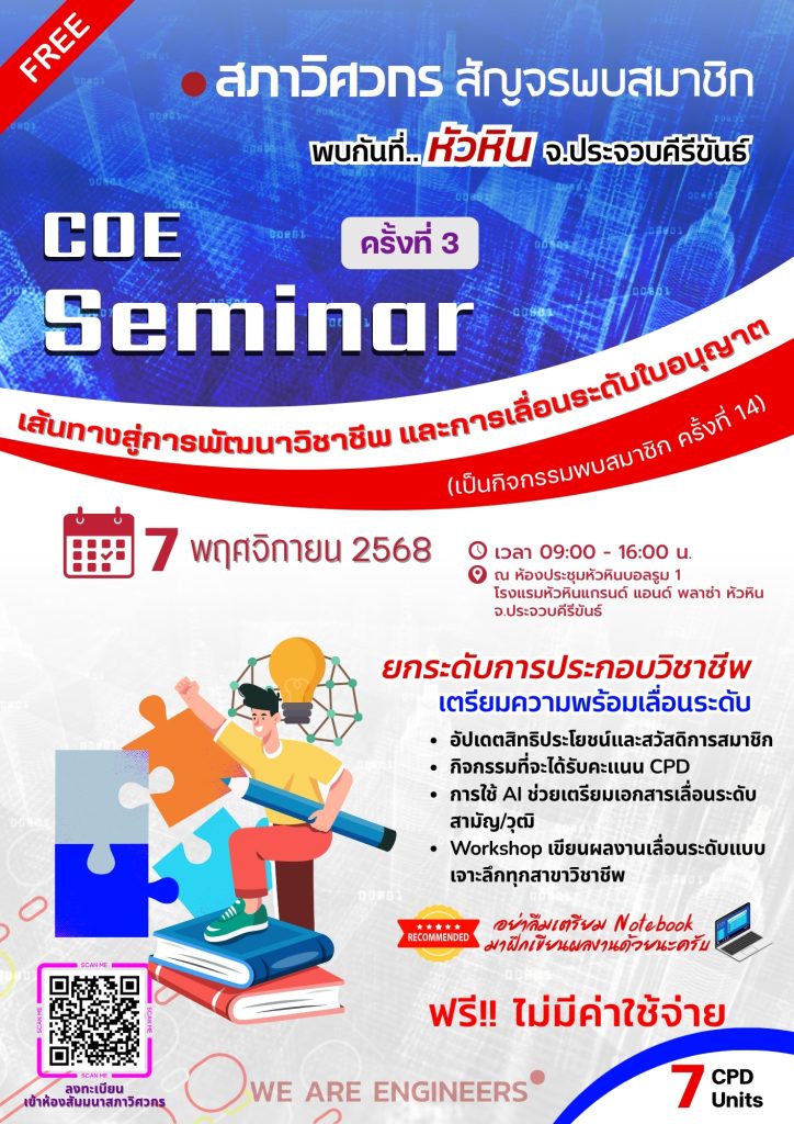 📣 เปิดลงทะเบียนแล้ว! COE-Seminar ครั้งที่ 3 (หัวหิน)