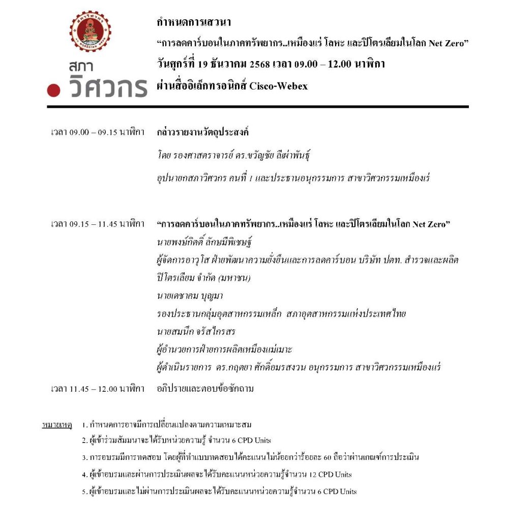 สภาวิศวกรโดยคณะอนุกรรมการสาขาวิศวกรรมเหมืองแร่ ขอเรียนเชิญเข้าร่วมเสวนา