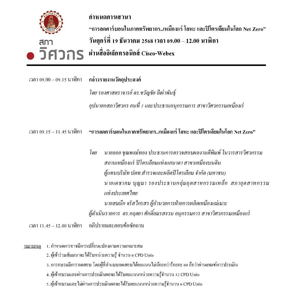 เรื่อง “การลดคาร์บอนในภาคทรัพยากร..เหมืองแร่ โลหะ และปิโตรเลียมในโลก Net Zero”