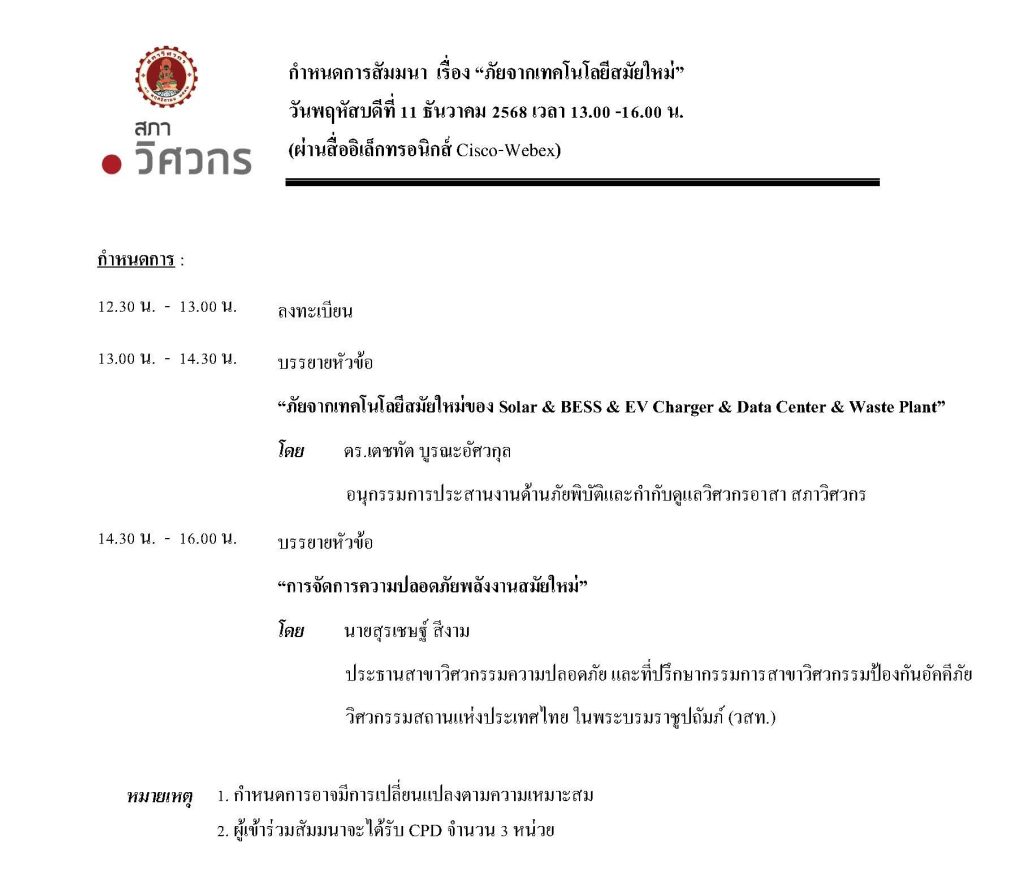 สภาวิศวกรขอเรียนเชิญเข้าร่วมสัมมนา เรื่อง “ภัยจากเทคโนโลยีสมัยใหม่”