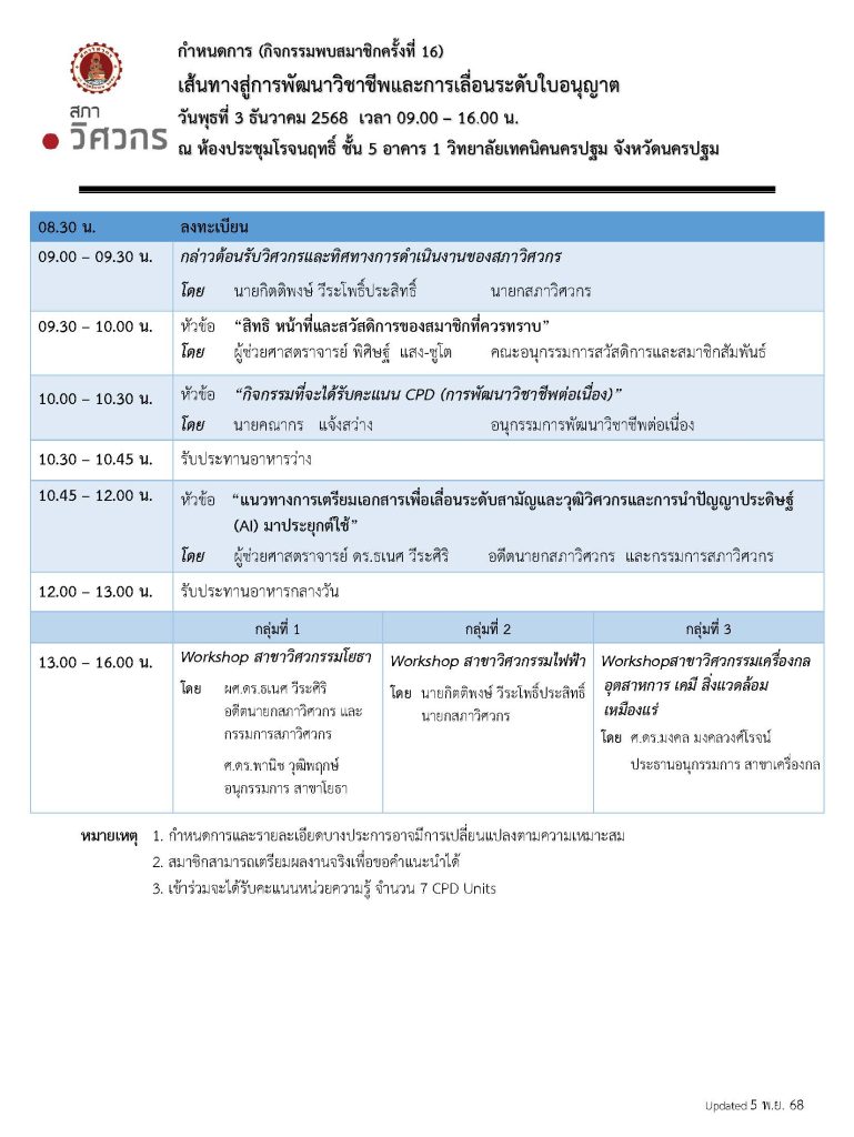 📣 เปิดลงทะเบียนแล้ว! เส้นทางสู่การพัฒนาวิชาชีพและการเลื่อนระดับใบอนุญาต จังหวัดนครปฐม (กิจกรรมพบสมาชิกครั้งที่ 16)
