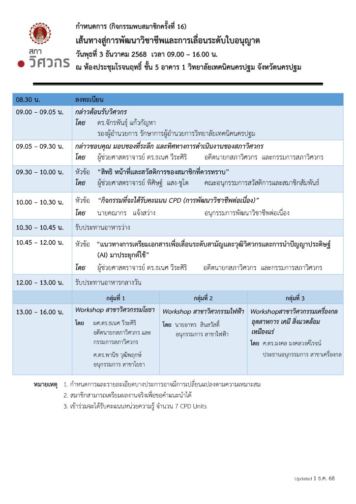 📍 ณ ห้องประชุมโรจนฤทธิ์ ชั้น 5 อาคาร 1 วิทยาลัยเทคนิคนครปฐม จังหวัดนครปฐม (Onsite เท่านั้น)